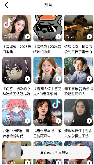 海心音樂最新版是一款音樂資源多多的播放器,在這里面,收集了各種類型的音樂,站點(diǎn)持續(xù)更新各種熱門音樂,類型非常全面,還可以創(chuàng)建自己的歌單,支持離線下載,隨時(shí)隨地都可以聽音樂,喜歡的友友快來下載吧。