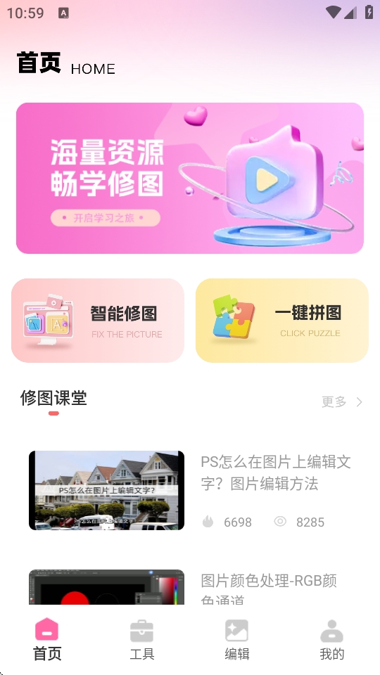 2、首頁可以看到平臺為大家準備了超多的修圖知識與課程;