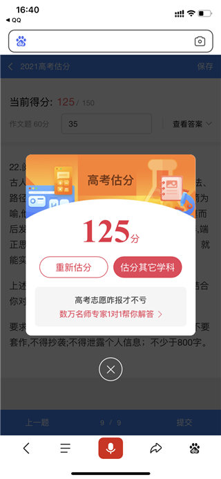 4、點擊頁面上的“估分”,然后可開始進行估分;;